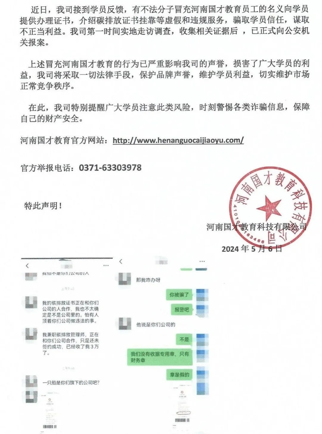 關(guān)于嚴(yán)厲打擊冒充河南國(guó)才教育從事非法活動(dòng)的聲明!