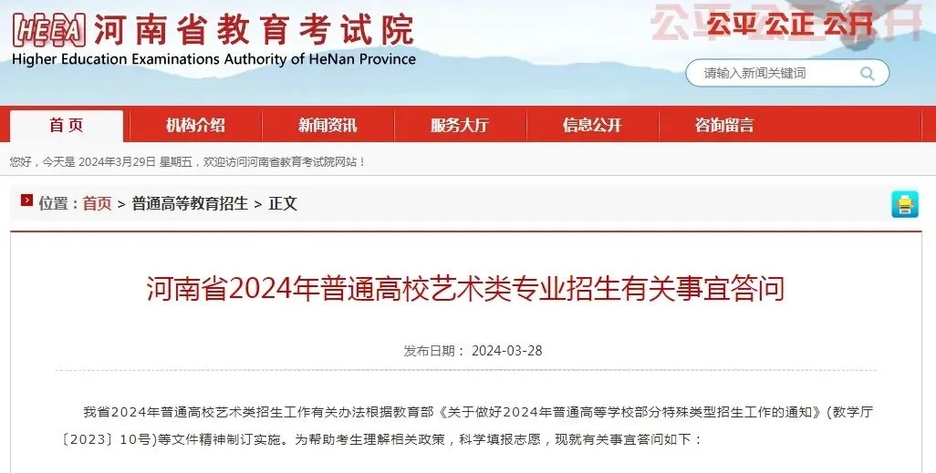 《河南省2024年普通高校藝術類專業(yè)招生有關事宜答問》